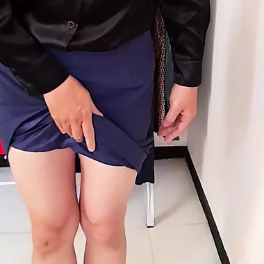 "Crossdressing wearing secretary satin blouse and formal office skirt"