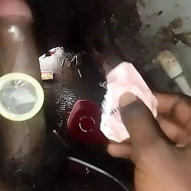 "Big black cock Indian hand job bathroom "