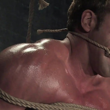 "Bound Muscular Damian Dragon Jerks Off Massive Cock"