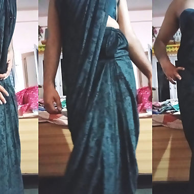 "Indian Gay Crossdresser Gaurisissy Wearing the Green Saree XXX and Feeling Sexy."