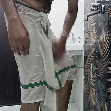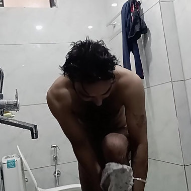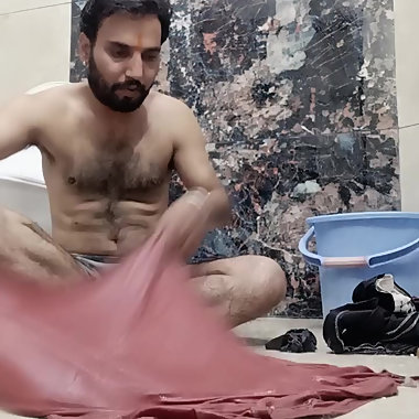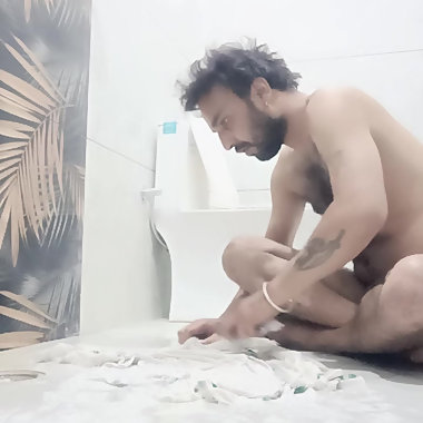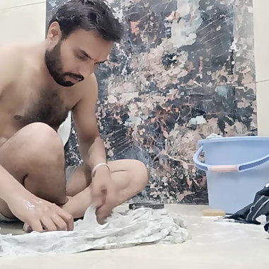 "Indian desi man enjoy shower and home duty"